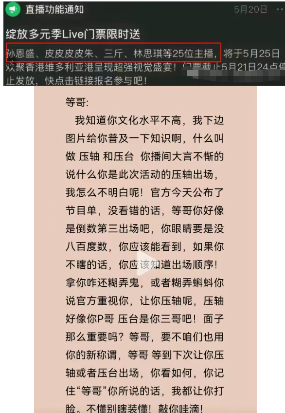 抖音的宣发名字上没有阿哲,有孙恩盛,皮皮皮皮朱,三斤,林思琪等25位主播,给阿哲名字省略在等里了,粉丝给阿哲起外号叫等哥,还写了一篇小作文。