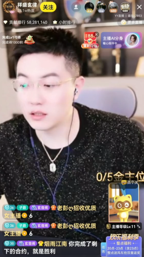 一大哥喊话玄律你完成剩下的合约就是胜利了,玄律回应在这个平台里面我能把跟官方想对应的条款都给他完成,最后能在YY平台全身而退,对于我来说真的是一场胜利。