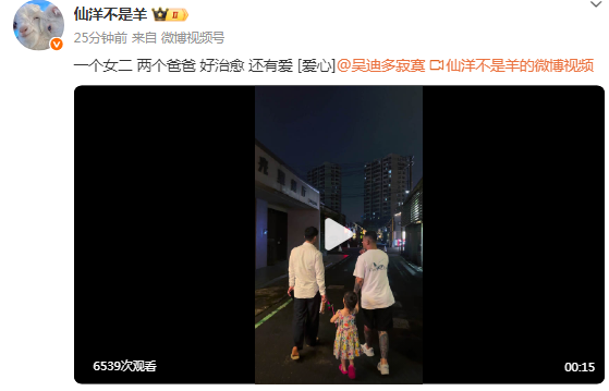 仙洋对吴迪小女儿是真的喜欢,发文一个女儿,两个爸爸。