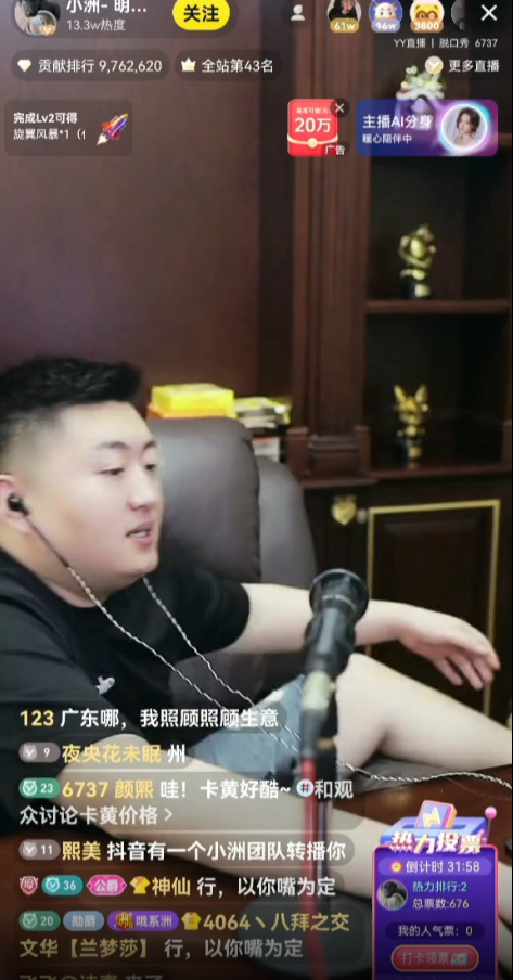 小洲直播公屏有粉丝打字,抖音有人转播你呢啊,小洲回应:转播转播被,但是你可听好了啊,有一天YY给你办了,你可千万别找我,我跟人肯定不管,你爱咋地咋地,有一天如果YY官方给你办了,那就不是说跟你要个几万块钱的事了。